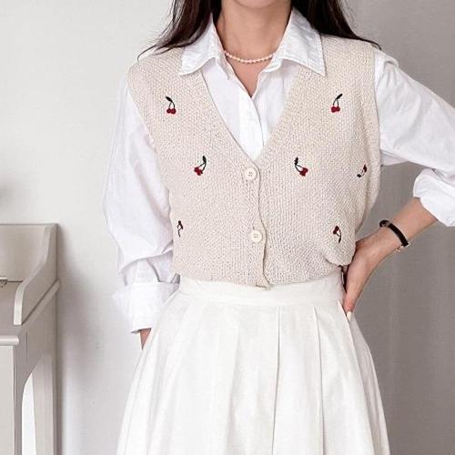 [다잇템][다잇템] 여자 코르셋 크로쉐 버튼 스웨터 FW 개강룩 체리 조끼_13865811_588872