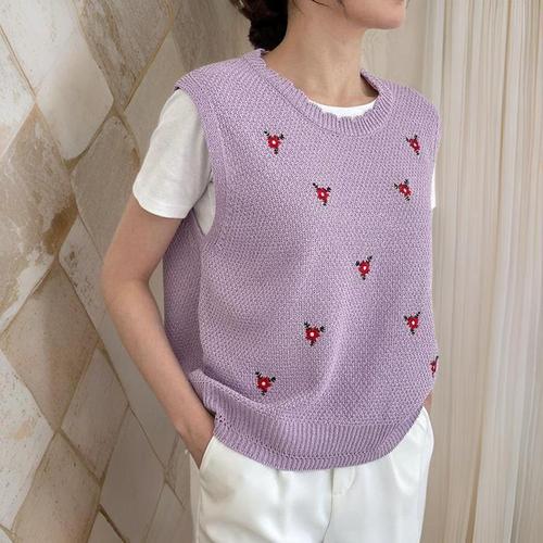 디아브 니트 뜨개 꽃무늬 조끼 플라워 패턴 그물 빈티지 무드 크로쉐