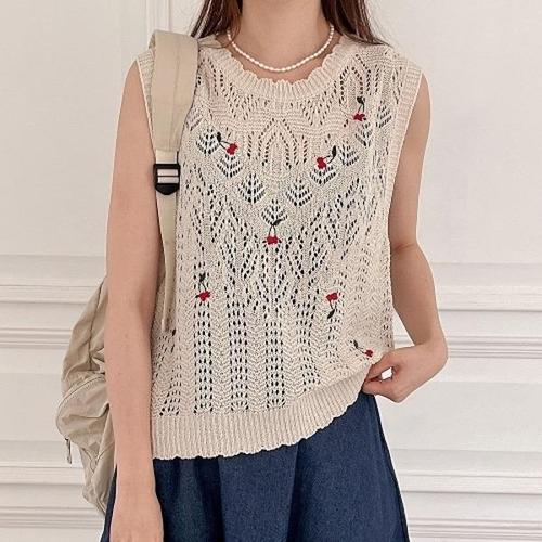 [미라클세븐][M7] 여자 SS 크로쉐 얇은 체리조끼 스카시 니트조끼