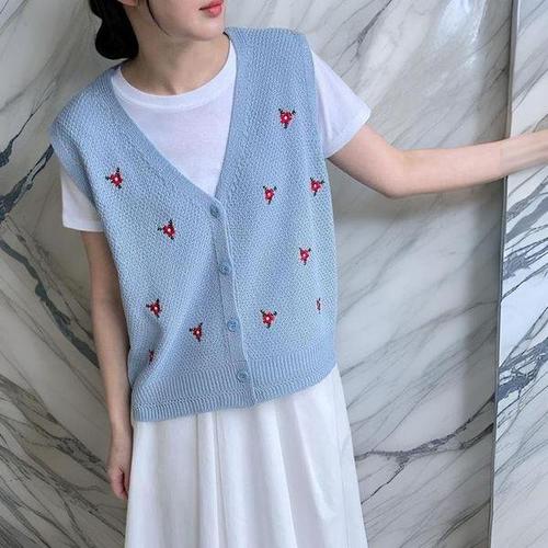 [브이와이][VY] 여자 SS 크로쉐 체리조끼 얇은 웨이브 스카시 니트조끼_17116663_588847