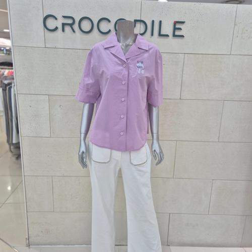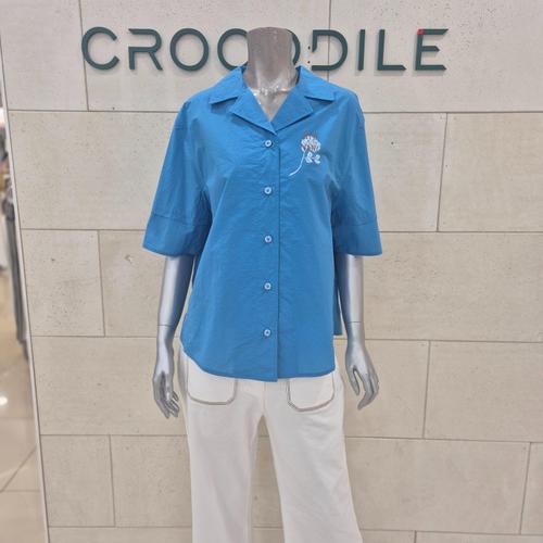 크로커다일레이디 소매 자수 오픈카라 블라우스 CLEMBL123