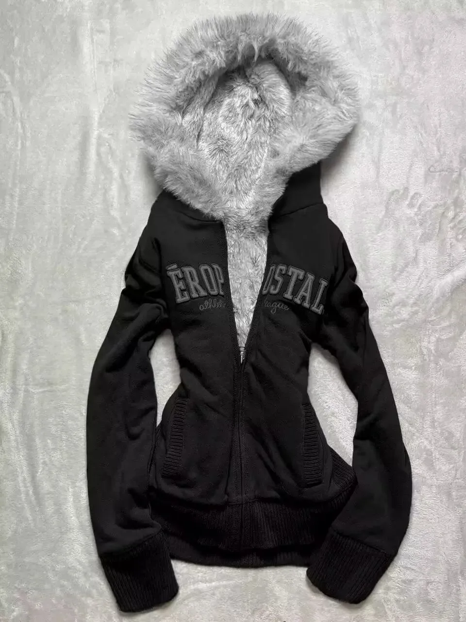 하라주쿠 한국 감성 빈티지 레터 퍼 칼라 후드 스웨트셔츠 카와이 가을 겨울 여성 Y2K 집업 후디