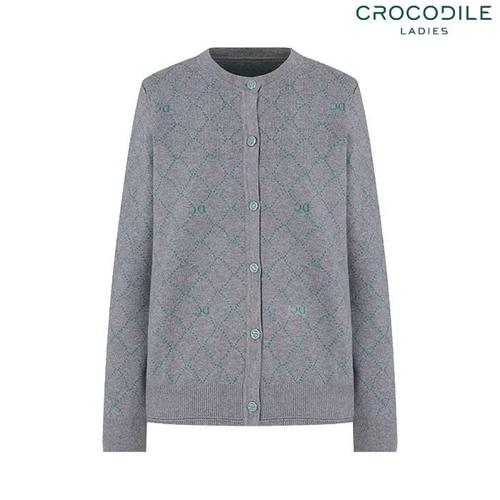 [크로커다일레이디](CLEWSW303) 다이아 패턴 자가드 라운드넥 가디건_GN