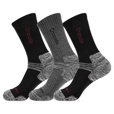 크로커다일 남성용 스포츠 쿠션 등산 장목양말 3족세트, 그레이, 1세트