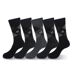 크로커다일 남성용 젠틀한 비즈니스 아가일 자수 장목 양말 5족 세트 CD332