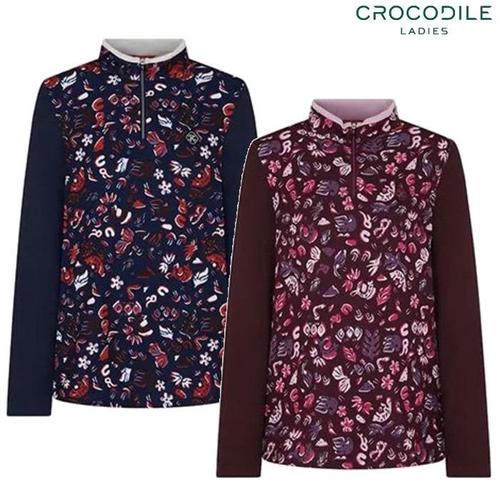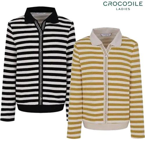 크로커다일레이디 여성용 스트라이프패턴 반집업티셔츠 CLCWTS207