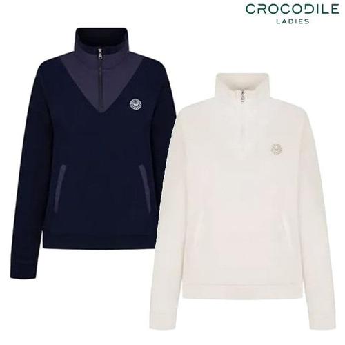 [크로커다일레이디](CLEWTS210) 코트나 기모 자가드 반집업 티셔츠_GN