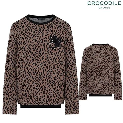 [크로커다일레이디](CLEWTS108) 호피 라운드넥 스판 티셔츠_GN