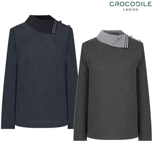 크로커다일 레이디 여성용 포켓 장식 솔리드 보온 니트 티셔츠 CLCWSW102