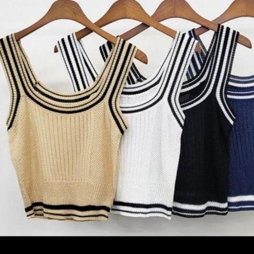 [에이치플러스몰]나시 인기 민소매 배색 크롭니트 감성 티셔츠