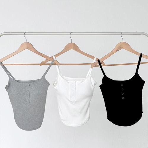 [에이치플러스몰]3단 앞단추 데일리 크롭 기본라인 클래식 나시티 반팔