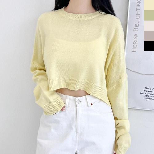 [르샵]데일리 심플 여성 라운드넥 크롭 니트 (DP1KT012A)