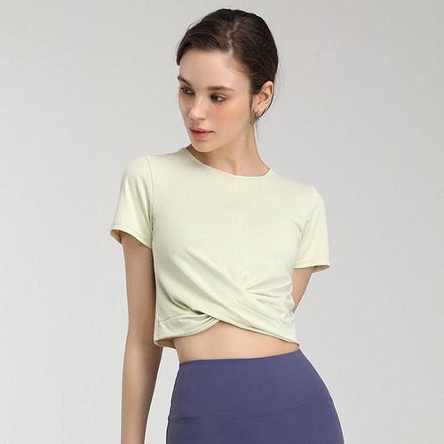 녹족 여성용 요가 필라테스 지니아 크롭 반팔티