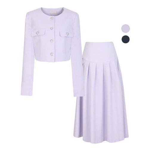 [비비드시크릿가너]SET 여성 바이올렛 봄가을 정장 크롭자켓+스커트 세트