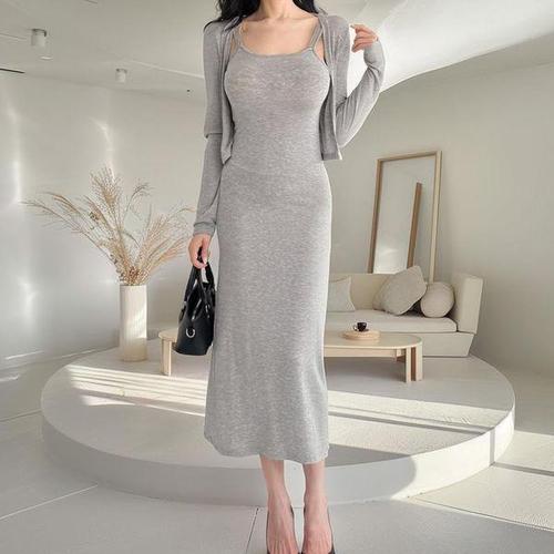 [옷자락]여자 데일리 나시 롱 원피스 크롭 가디건 세트