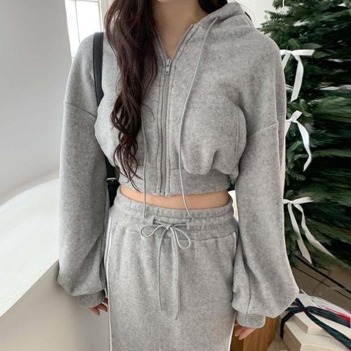 [미라클세븐]여성 후드 집업 크롭탑과 허리밴딩 스커트 세트