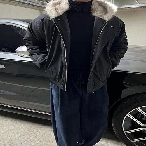 [원스톤]원스톤 시그니처 퍼 후드 MA-1 항공 점퍼 1color 오버핏 크롭 숏 커플룩 두꺼운 따뜻한 스트라이프