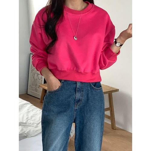 [샵앤]여성 라운드 무지 크롭 맨투맨 티셔츠 21DS-WSH-4904-핑크
