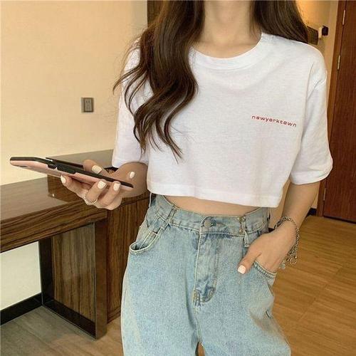 [에이치플러스몰]티셔츠 패션티 여자 크롭 맨투맨 캐주얼 라운드티 나