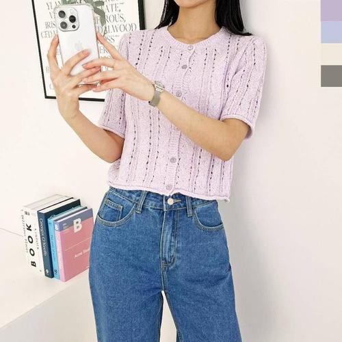 [에이치플러스몰]여성 반팔 펀칭 크롭 니트 가디건 1P 시원한 카디건