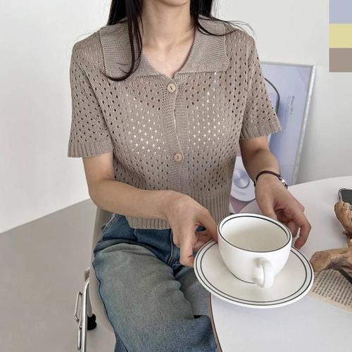 [라일리여성의류] Rly 1050여름 크롭 니트 반팔 카라반팔니트가디건