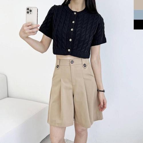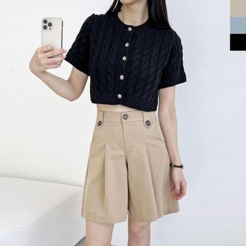 [에이치플러스몰]반팔 인기 가벼운 크롭 단추 감성 가디건 꽈배기패턴