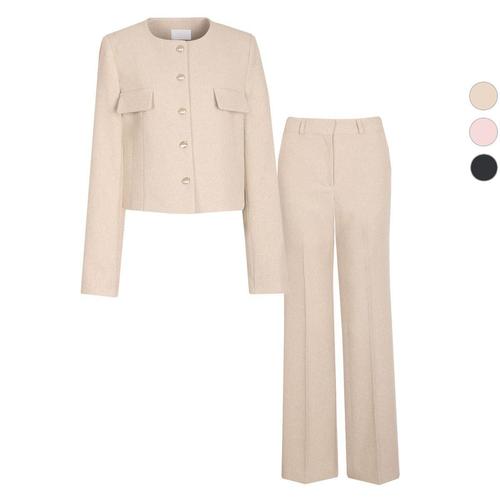 [비비드시크릿가너]SET 여성 미니멀 봄가을 세미크롭 정장자켓+팬츠 세트