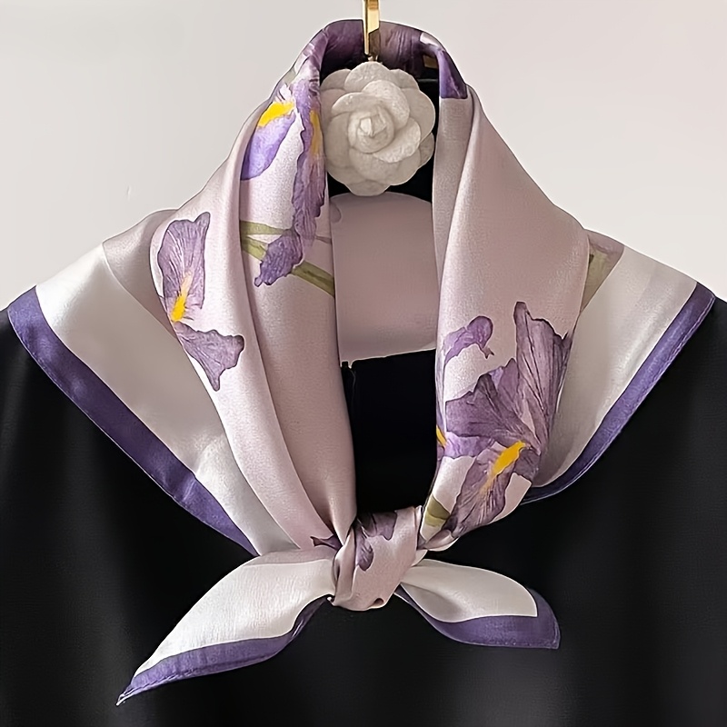 TEMU 고급 100% 멀베리 실크 스카프 - 대형 사이즈 69.85 * 69.85 Cm 정사각형 천연 중국 실크 & 우아한 빈티지 기하학적/보라색/ 색상, 특별한 날, 결혼식, 사진 촬영에 적합 - 손세탁 가능한 논스트레치 스카프 액세서리