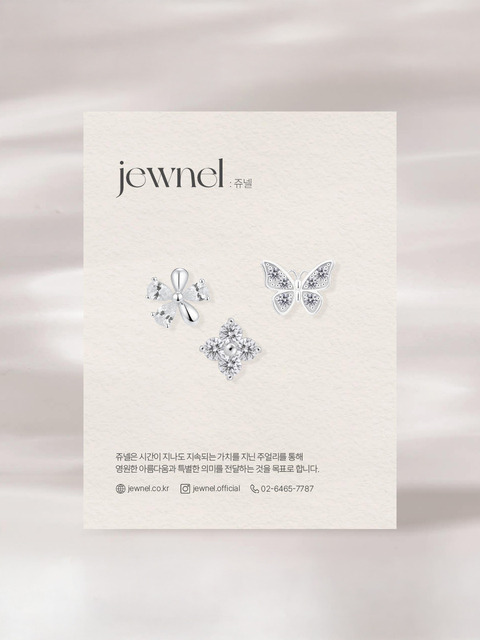 [쥬넬] [3개세트]Silver925 봄날 크리스탈 큐빅 나비 앤 플라워 피어싱 세트