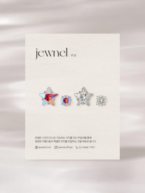 [쥬넬] [4개세트]Silver925 각 컷팅 별 큐빅 오로라 크리스탈 피어싱 세트