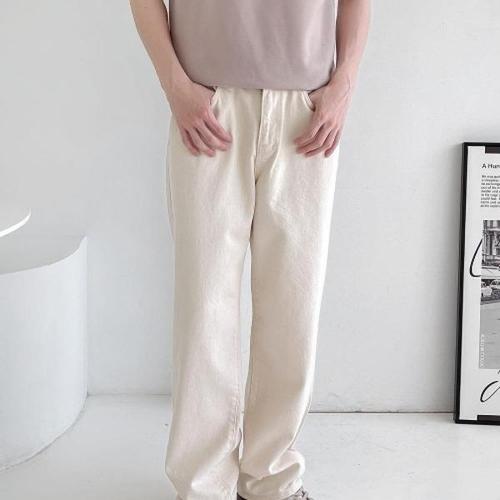 [브이와이][VY] 남자 코튼 크림색 롱팬츠 SS H라인 넓은 면원단 바지_13470017_588847