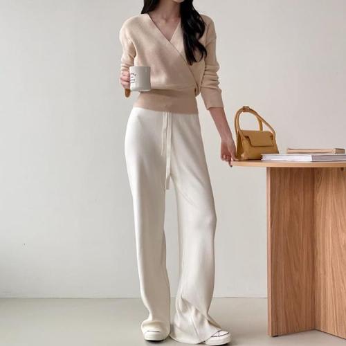 [미라클세븐][M7] 여자 크림색 봄집앞룩 세미부츠컷 울니트 팬츠