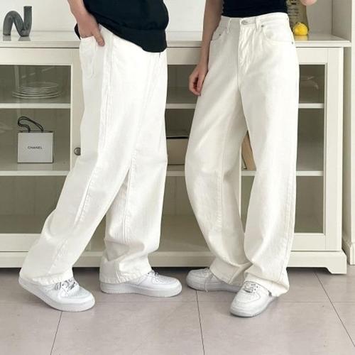 [다잇템][다잇템] 남자 H라인 시밀러룩 롱팬츠 크림색 여자 통핏 바지_16842684_588872