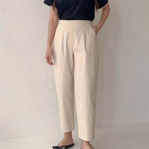 [다잇템][다잇템] 여자 백밴딩 SS 면원단 크림색 넓은 H라인 바지_22341588_588872