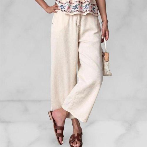 [옷자락]여성 여름 린넨 크림색 와이드 팬츠 밴딩 통바지