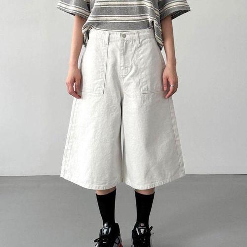 [다잇템]여자 넓은 에이라인 크림색 버뮤다팬츠 반바지