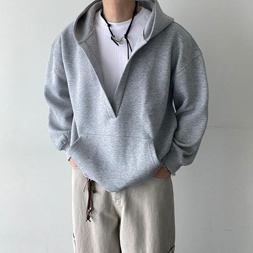 [모노폴로지]브이넥 모자큰 후드맨투맨 오버핏 무지 두꺼운 면100 가을 긴팔 봄 후드티셔츠 2color