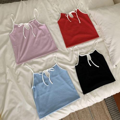 [다잇템]여자 큰사이즈 리본 민소매티 내의 세트