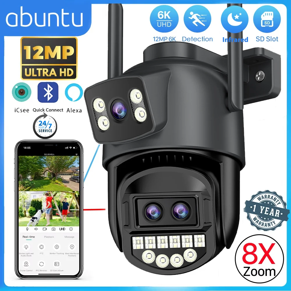 8MP WIFI 감시 카메라 듀얼 렌즈 듀얼 스크린 IP 카메라 무선 자동 추적 컬러 야간 투시경 8배 디지털 줌 CCTV 카메라