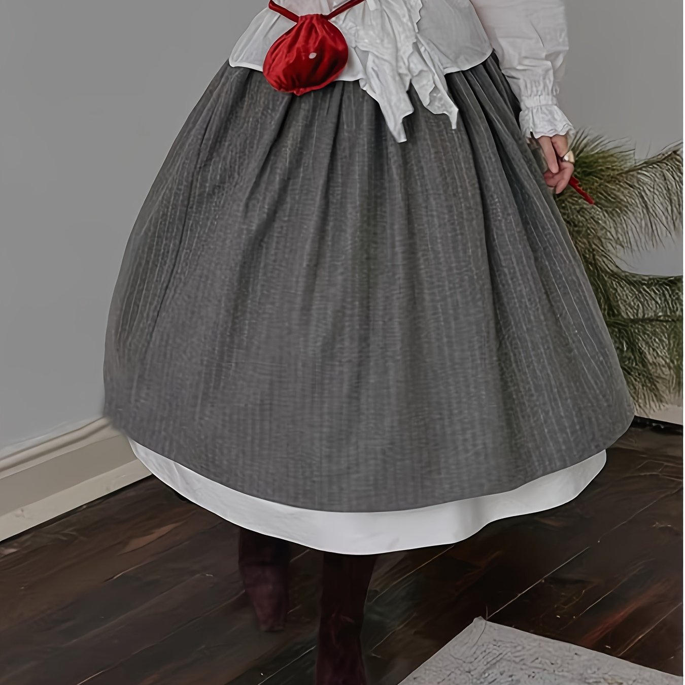 TEMU 하이-로우 플리츠 스커트, 리본 디테일, 폴리에스터 블렌드, 다재다능한 올 시즌 짜임 스커트