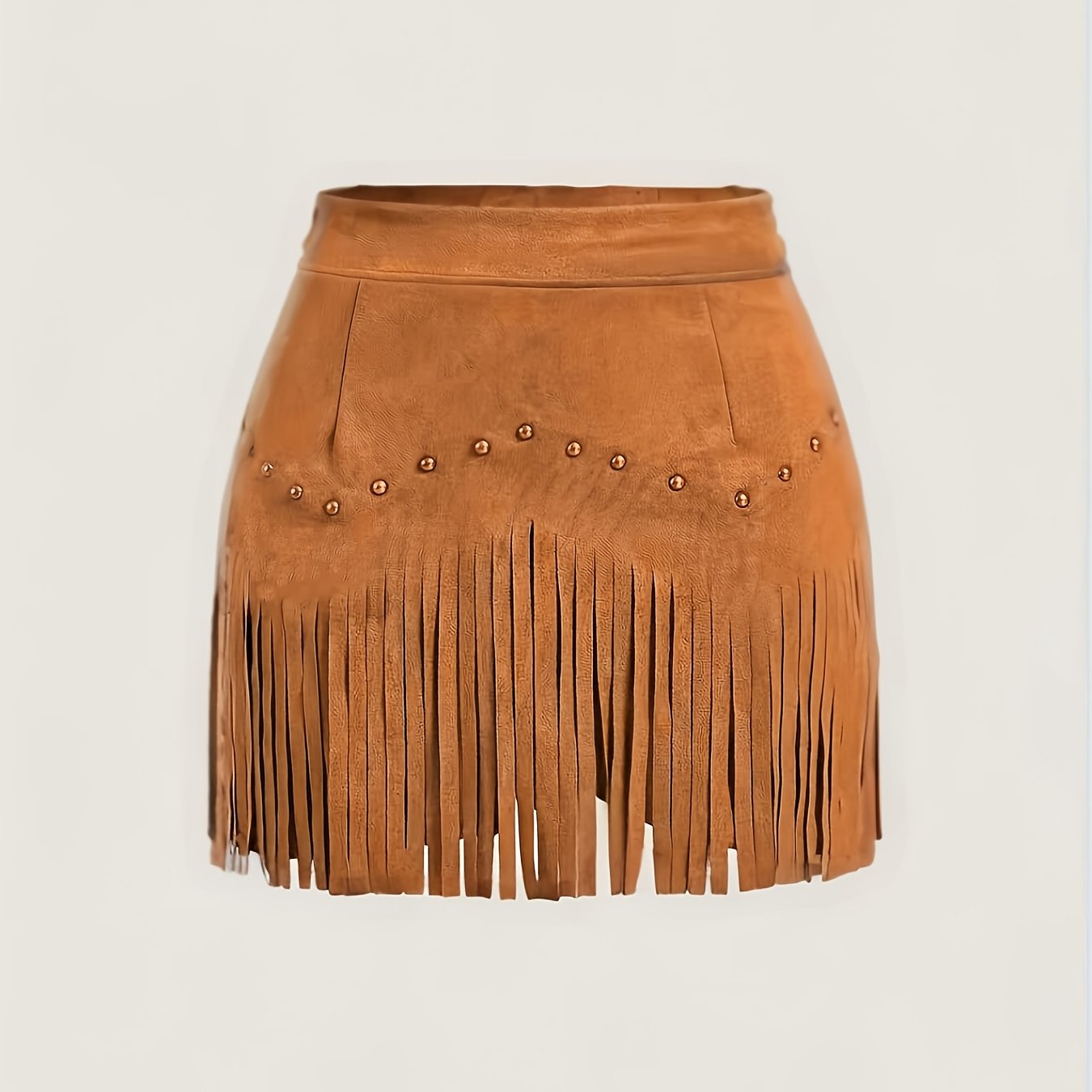 TEMU 여성용 빈티지 프린지 헴 A라인 스커트 - 프린지 태슬 & 벨트리스 디자인, 솔리드 브라운 숏 길이, 봄/가을/여름에 어울리는 구조적 핏, 캐주얼부터 포멀 이벤트까지 - 손세탁 가능한 프린지 스커트, 데일리 & 특별한 날을 위한 레트로 스타일, 프린지 디테일, A라인 실루엣, 슬릿 헴 디자인으로 매력적인 핏, 크리스마스 스커트