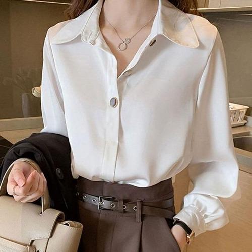 [엄지척]클래식 여성 블라우스 베이직 긴팔 블라우스 화이트_19644347_667501