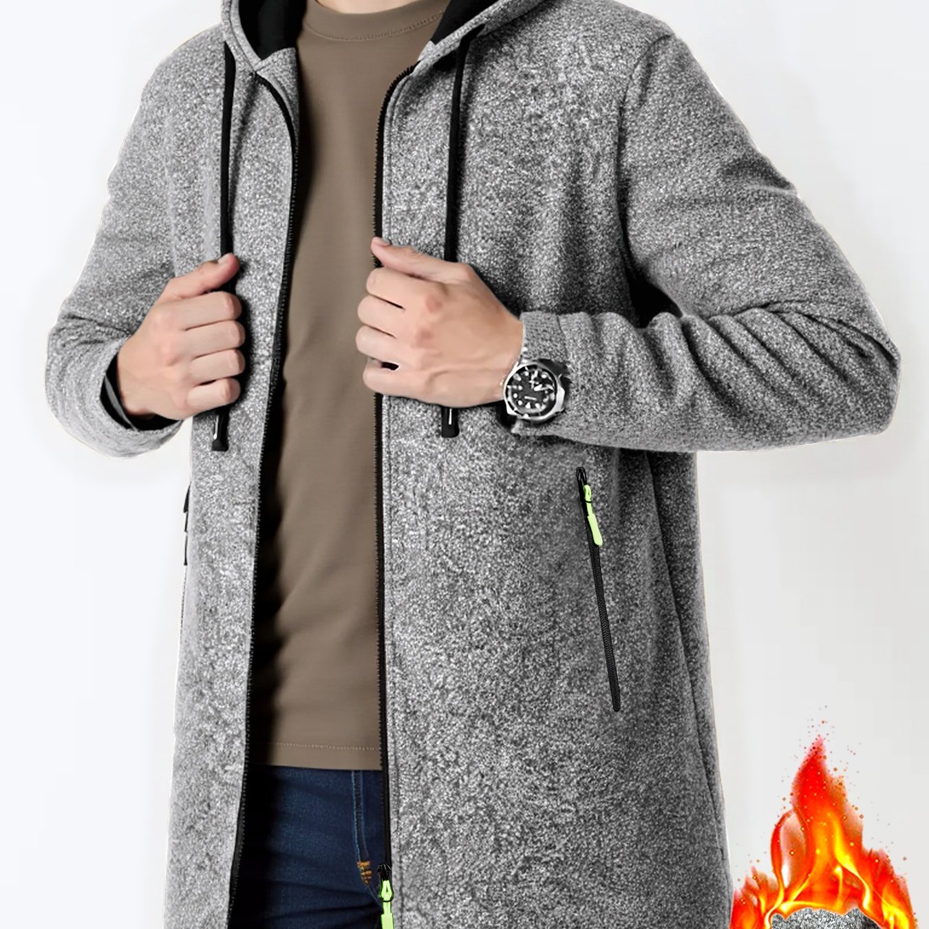 TEMU 남성용 기모 안감 따뜻한 롱 트렌치 코트 슬림핏 재킷 캐주얼 패션 그레이 트렌디 다용도 부드럽고 편안한 상의 긴팔 남성용 니트 스탠드업 칼라 지퍼 단색 야외 파티 출퇴근 스트리트 두꺼운 후드 코트 가을용 1개