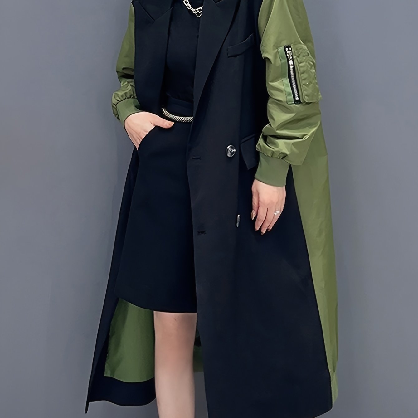 TEMU 일본식 수트에서 영감을 받은 캐주얼 롱 트렌치 코트, 컬러 블록과 루즈한 가디건 스타일 디자인