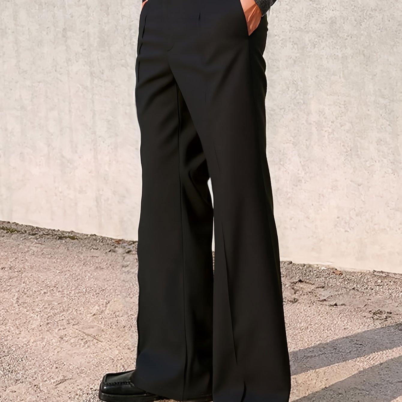 TEMU 남성용 미드-하이웨이스트 레그 슬라이트 플레어 드레스 팬츠, 봄/가을 캐주얼 정장 바지