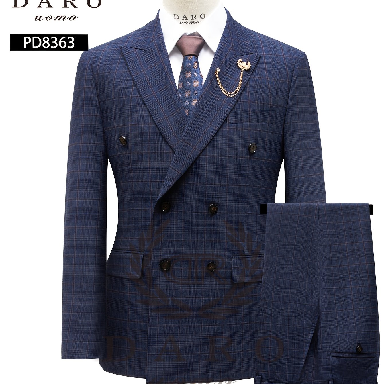 TEMU 다로 우오모 2피스 캐주얼 수트 - ///블루-그레이 체크 무늬 수트 & 팬츠, 노치드 재킷 & 매칭 트라우저 (셔츠/넥타이 별도 판매), 비즈니스 웨딩 복장, 2피스 수트