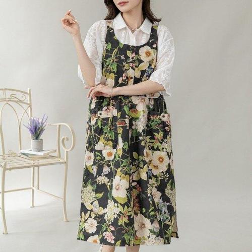 [디얼마미][디얼마미] 화사 플라워 린넨 끈 원피스 /마담 미시 중년 여성 빅사이즈 40대 50대