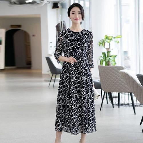 엄마옷 드리다 여성 봄 가을 패턴 쉬폰 프릴 빅사이즈 원피스 40-50대 미시 중년여성 마담옷 하객 상견례