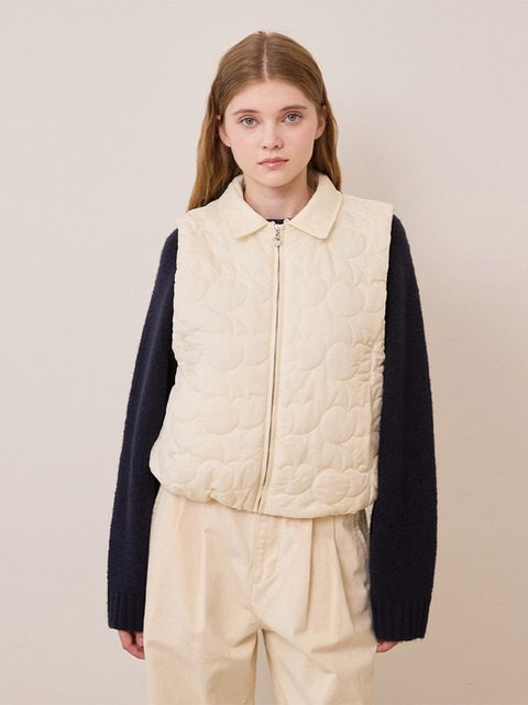 [키르시] 체리 퀼팅 인조퍼 카라 베스트 [아이보리]