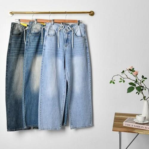 [큐즈](S-2XL숏/기본/롱 3단 기장) 여성 스트링 와이드 청바지 하이웨스트 키작녀 빅사이즈 데님 팬츠 9..